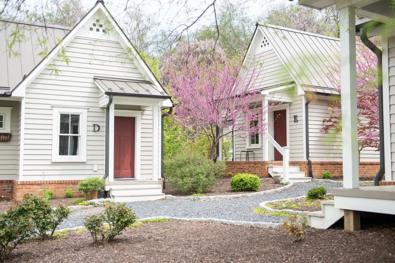 Down the hill from Fine Creek Brewing are 13 cottages - 7 one-bedroom, 5 two-bedroom, and 1 three-bedroom – with a large green space and walkways between them. These suites feature a host of amenities: Each cottage has a private sitting room in addition to the bedroom(s), has central heat/air, a TV in the sitting room with cable, free WiFi, a small refrigerator/freezer, and glassware. The bedrooms have ceiling fans and queen-sized beds with locally manufactured mattresses; we use 100% cotton 600 thread-count sheets on our beds. We also operate with the features of a bed & breakfast offering our guests complimentary breakfast – freshly baked light morning fare – and other items and services that will be available through our historic general store.